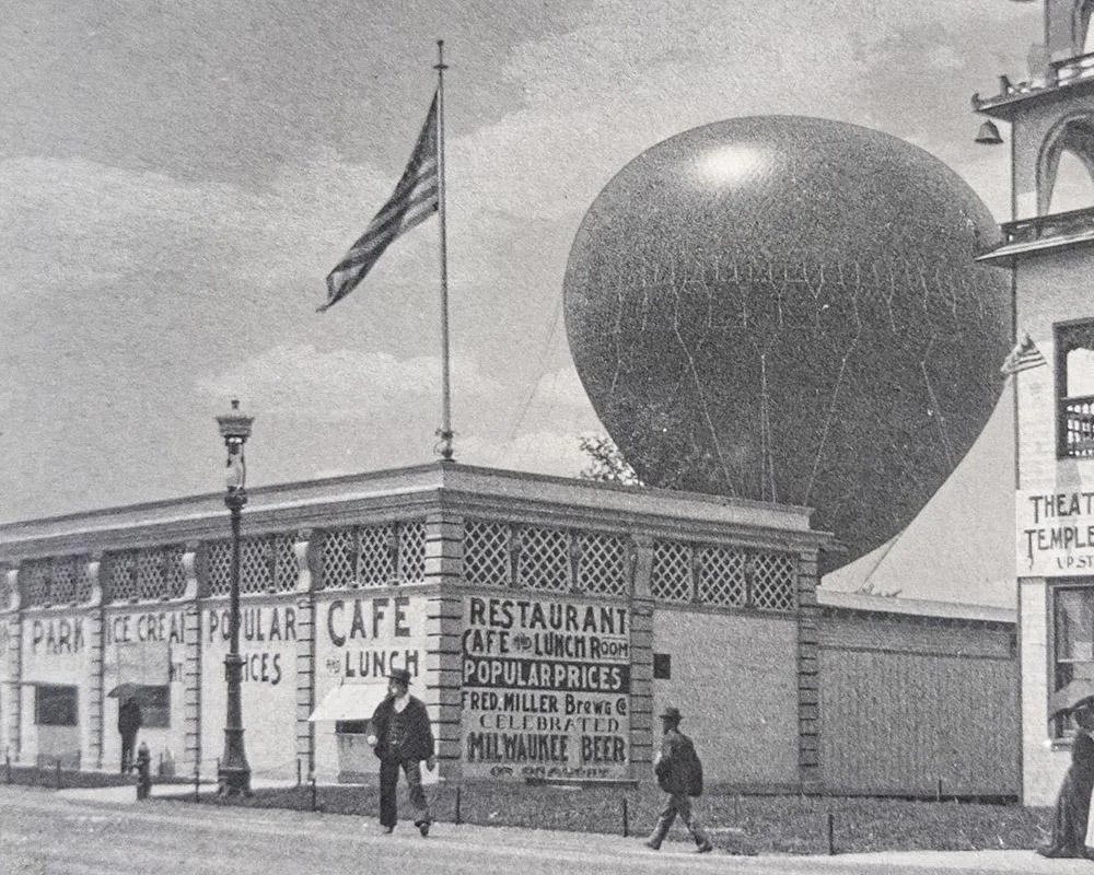 The captive balloon, here, at the Columbian World’s Exposition allows for extraordinary and futuristic views of the fairgrounds from the air. It is an experience like no other that has never been seen before. It carries passengers up to 1,000 feet in the air. Our balloon is tethered to the ground by a rope and reeled in during storms to ensure extreme caution and prestigious safety of our passengers. It takes numerous trips each day, including up to 35 trips in just one afternoon! This allows every fair attendee to be able to have their turn on the captive balloon attraction.